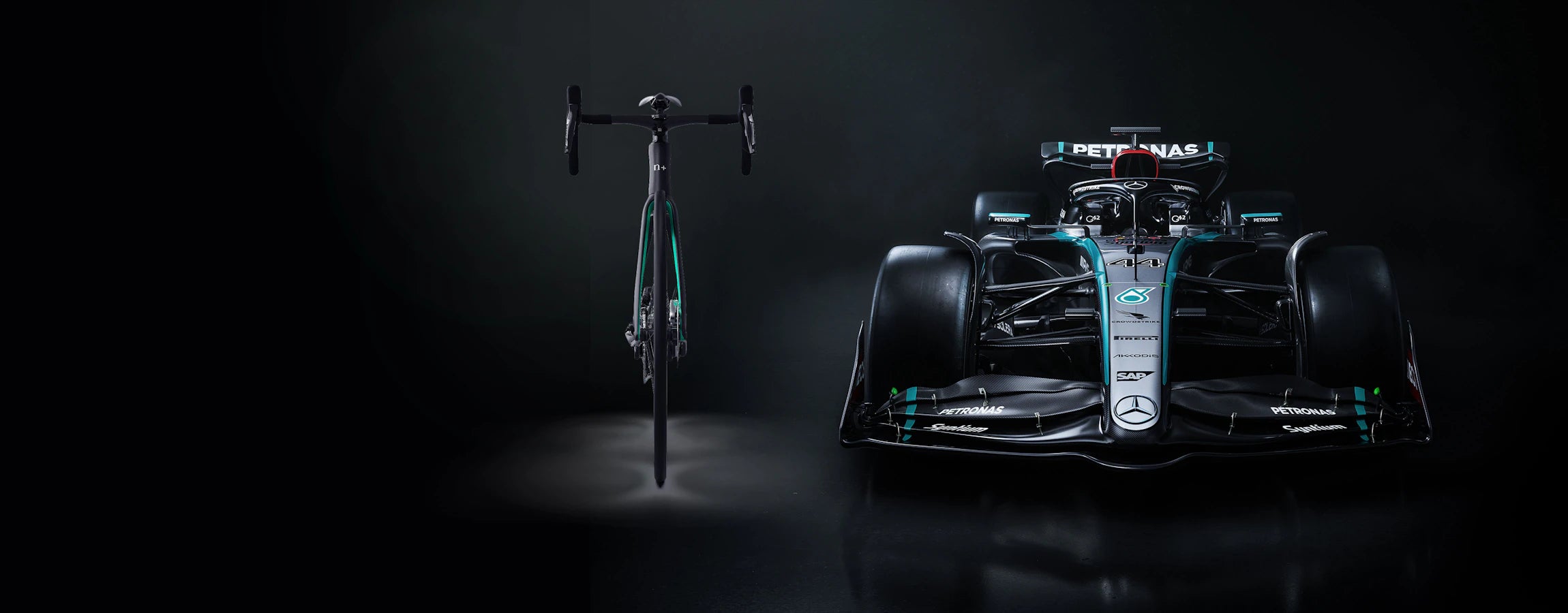 The Mercedes-AMG PETRONAS F1® Team V15 Road Edition is a high-performance carbon road bike built in the image of the team's race car. Like the car, it's designed for one purpose — to go exceptionally quick.
