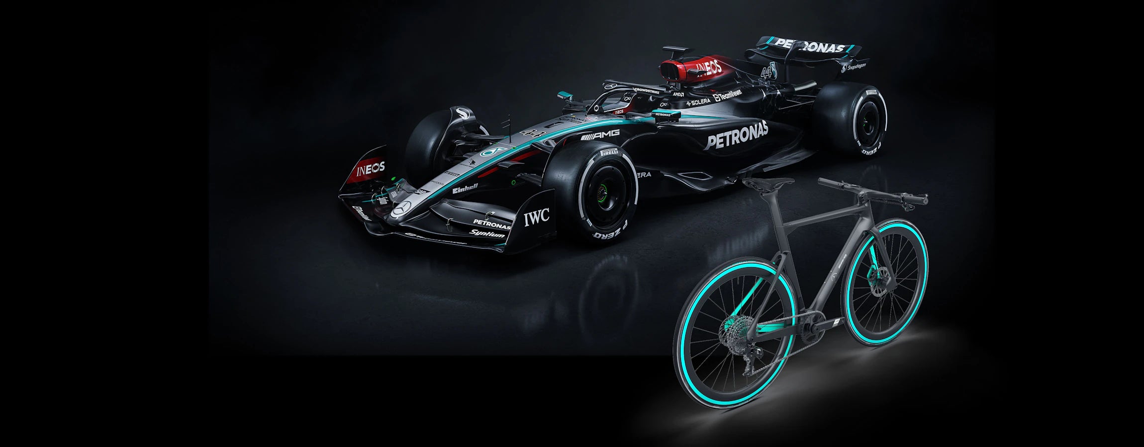 À l'intersection de la fonction, de la forme et de la performance se trouve la Mercedes-AMG F1® Team V15 Urban Edition, un vélo urbain agressif tout en carbone, doté d'un guidon carbone intégré sur mesure et de roues à section profonde. Proposé en édition limitée, il arbore un design inspiré de celui de la F1.® la voiture de course de l'équipe et incarne son mantra — « Tout est dans la performance. »